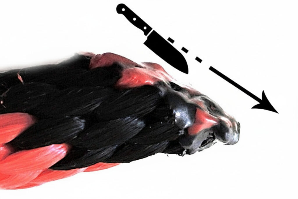 Lana na výrobu vodítek a postrojů je třeba přeřezat pod úhlem 45 – 55°. Lano si vezme do obou rukou a začneme řezat od silnější části po tenký konec špičky. Lépe dosáhneme požadovaného úhlu a špička bude mít ostrý a neroztřepený okraj.